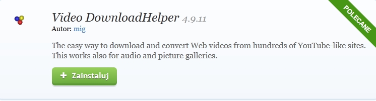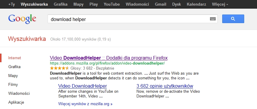 1. Uruchom Firefoxa i wpisz w Googlach „Download Helper” – naciśnij na link znajdujący dodatku Download Helper.