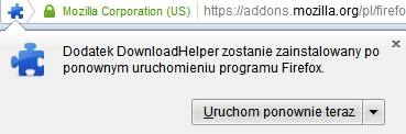 5. Na końcu instalacji należy uruchomić ponownie Firefoxa aby dodatek został włączony