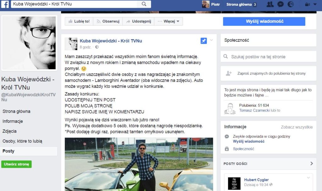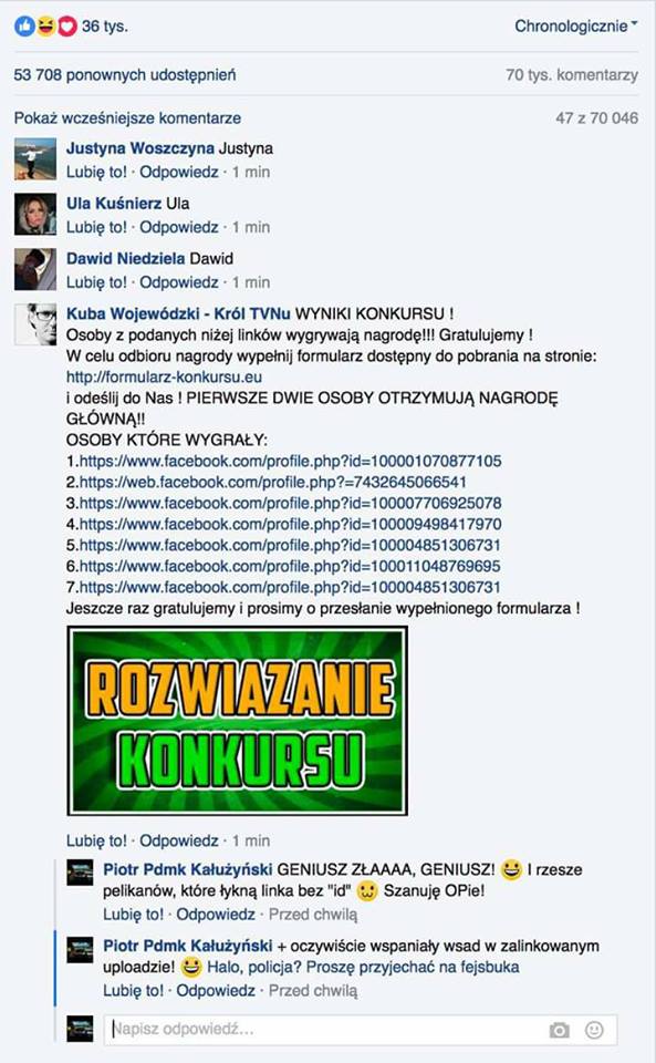 W podsumowaniu konkursu „Króla TVN-u” administrator fake-owej strony podziękował swoim „lajkowiczom” i „udostępniaczom”